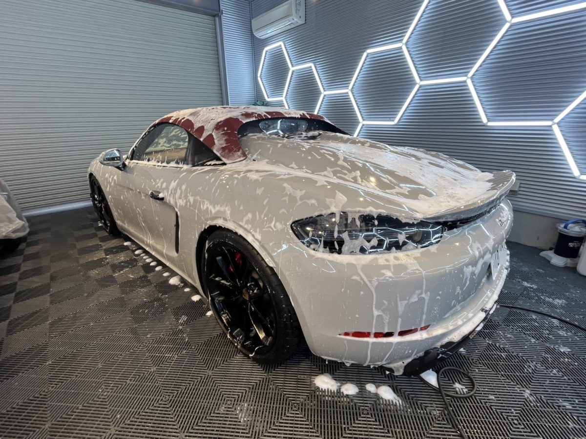 ご成約車の718スパイダーにセラミックコーティングを施工しました。